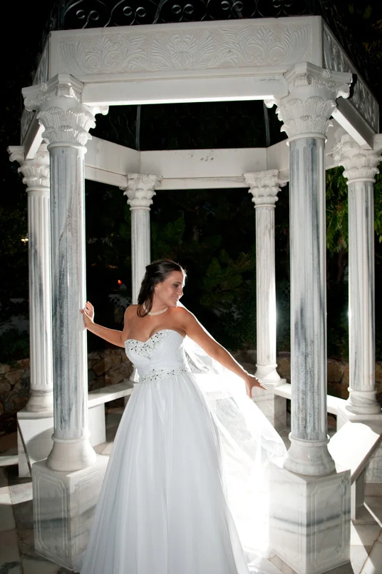 Using off camera flash is a technique that I use to capture fun and creative wedding photos. When doing off camera flash, I typically use one flash on my camera and then a second flash on a stand. As shown in this picture, I used one flash unit behind the bride and I also used the flash unit on my camera. I really love how her veil is bright white in the photograph.